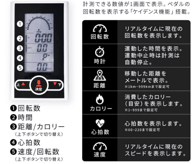 走行時間はなかなか性能が良く(というか普通に動作する)、ペダルを漕ぎ始めると自動でカウントスタートし、止めるとストップしてくれます。起動から停止まで一切操作が不要なのでとても便利です。